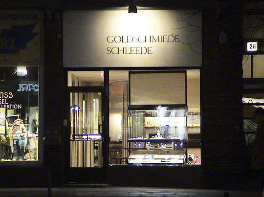 | In unserem Laden finden Sie eine große Auswahl von Arbeiten aus eigener Werkstatt sowie Stücke namenhafter Goldschmiede aus ganz Deutschland. Schmuck aus Silber, Gold, Platin, Edelstahl, auch die Kombinationen mehrerer Materialien zeigen wir ihnen gern. Armschmuck, Ohrschmuck, Halsschmuck, Ringe, Trauringe in allen Farben und Formen auch aus den Manufakturen Bauer und Niessing sind neben den Uhren von Georg Plum nur ein Teil unseres Angebots. | |